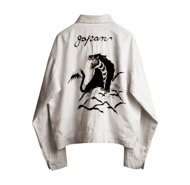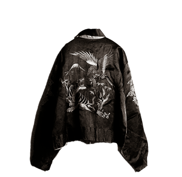 À la croisée de deux mondes, ces pièces associent des coupes d’inspiration américaine (type bomber ou teddy) à des motifs iconiques de l’imaginaire asiatique : dragons, tigres, oiseaux, paysages et cartes.