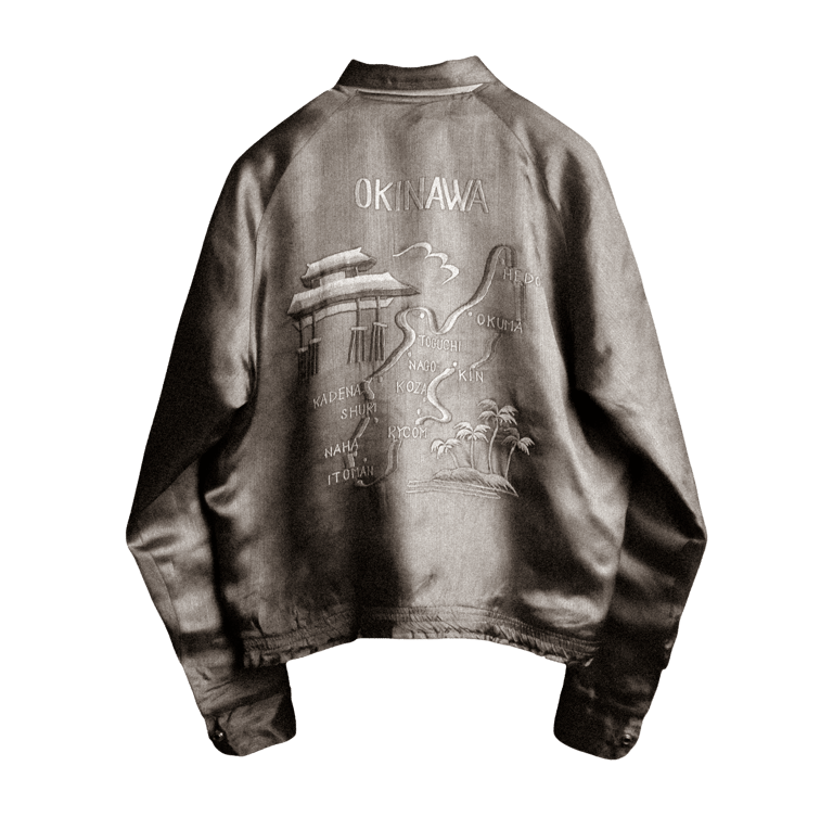 C’est dans ce contexte que naissent les premières souvenir jackets : des vestes réversibles brodées, commandées sur mesure ou achetées dans les boutiques situées autour des bases militaires.