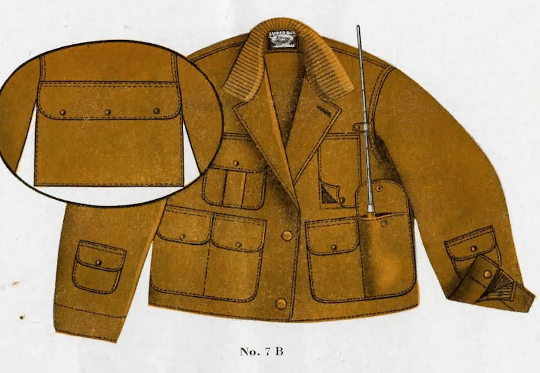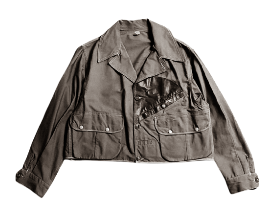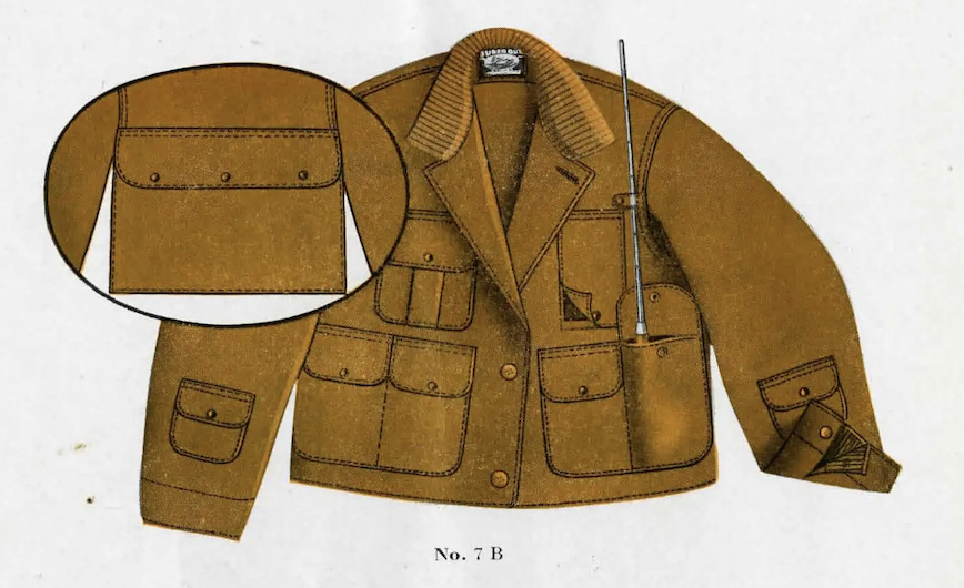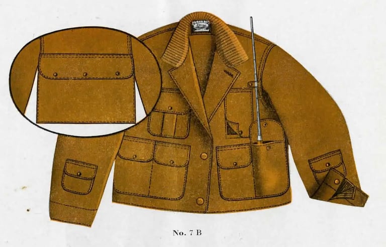 The pocket could be opened and closed by unbuttoning a flap under the collar, which made it easy to load or unload game without removing the jacket. This feature was particularly useful in cold weather, where removing layers could lead to discomfort or exposure.