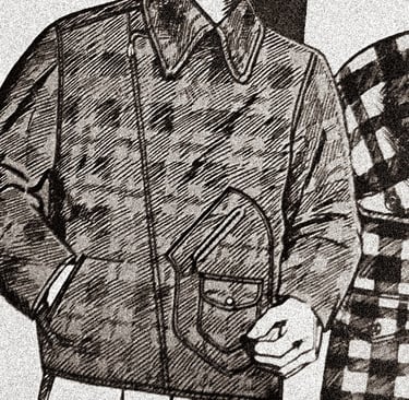 The Bodyguard jacket was typically made from heavy-duty canvas or duck cloth, with reinforced stitching to handle the weight of the game. The pocket was often lined with waterproof material to prevent blood and fluids from soaking through to the inner layers.