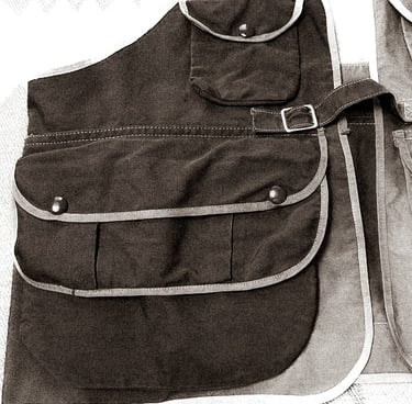 La veste Bodyguard était généralement fabriquée à partir de canvas résistant ou de tissu de canard, avec des coutures renforcées pour supporter le poids du gibier. La poche était souvent doublée d'un matériau imperméable pour empêcher le sang et les liquides de pénétrer dans les couches internes.