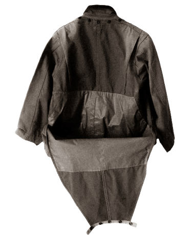 un exemple de vêtements militaires réinventés pour répondre à des besoins spécifiques: Une combinaison en HBT de l'armée américaine découpée.